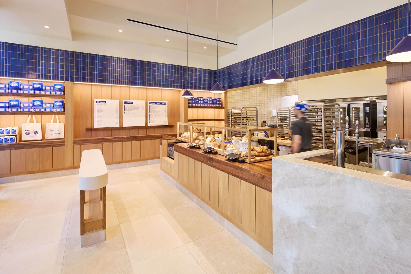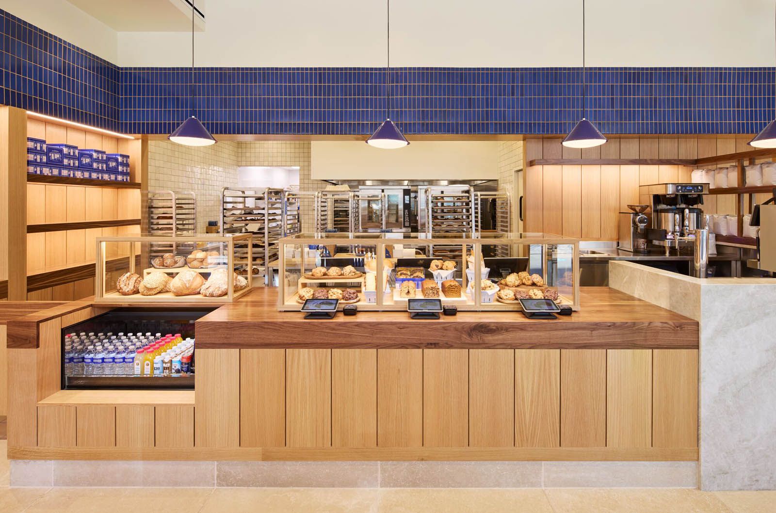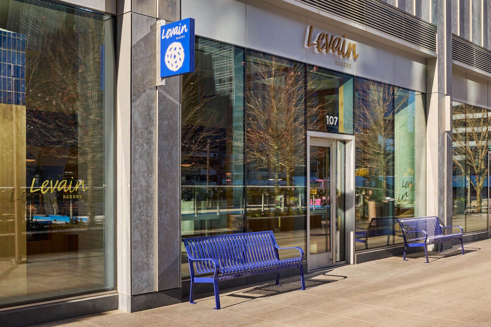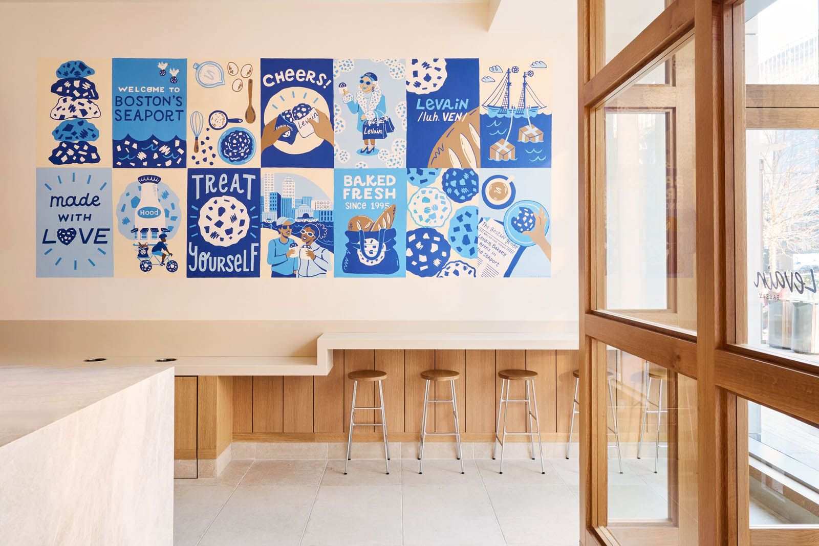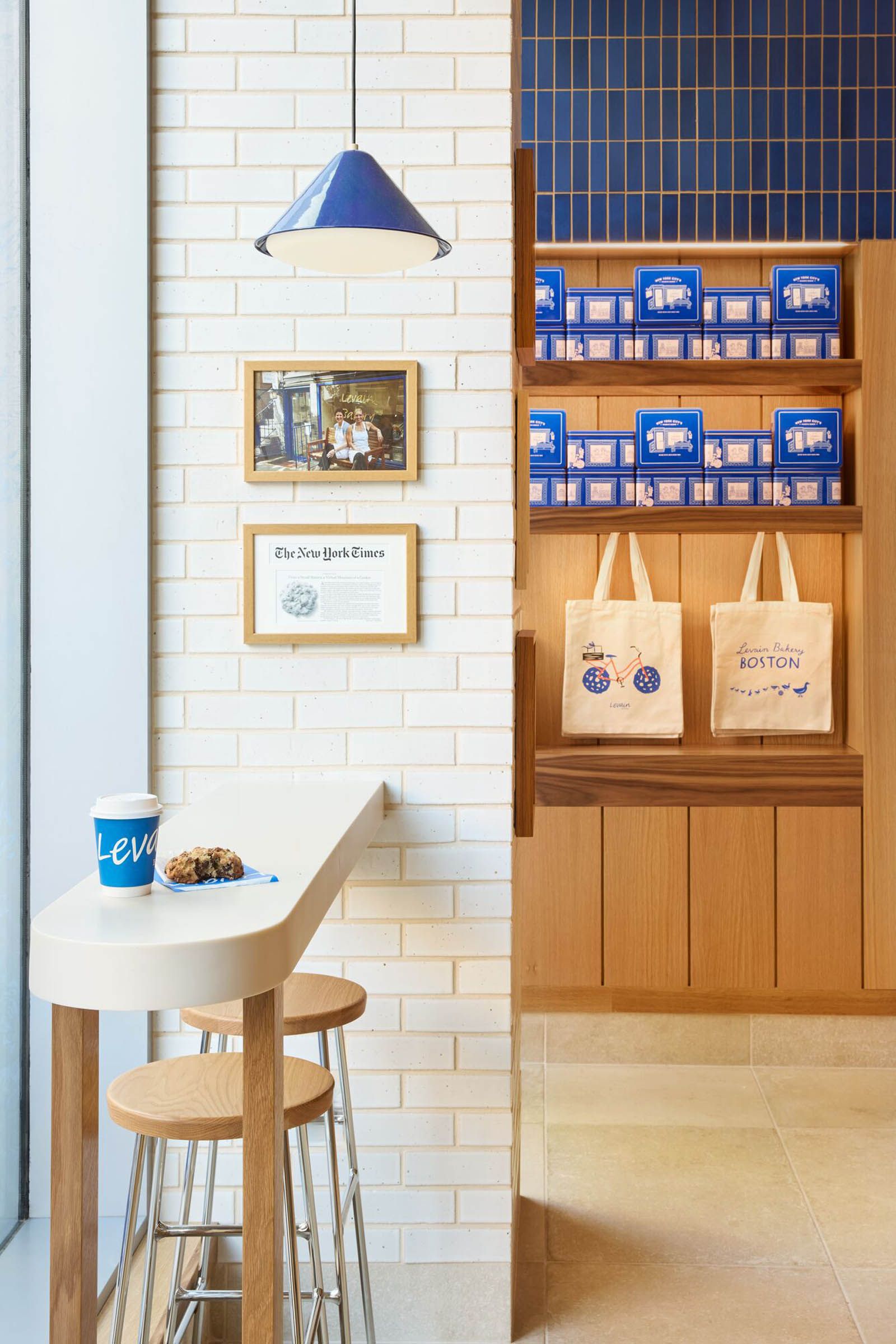The new Levain Bakery is an on-brand space with the company’s signature blue incorporated into the interior. Our work resulted in an open, comfortable space for bakery guests to order takeaway or linger at high-top counters to enjoy their treats.