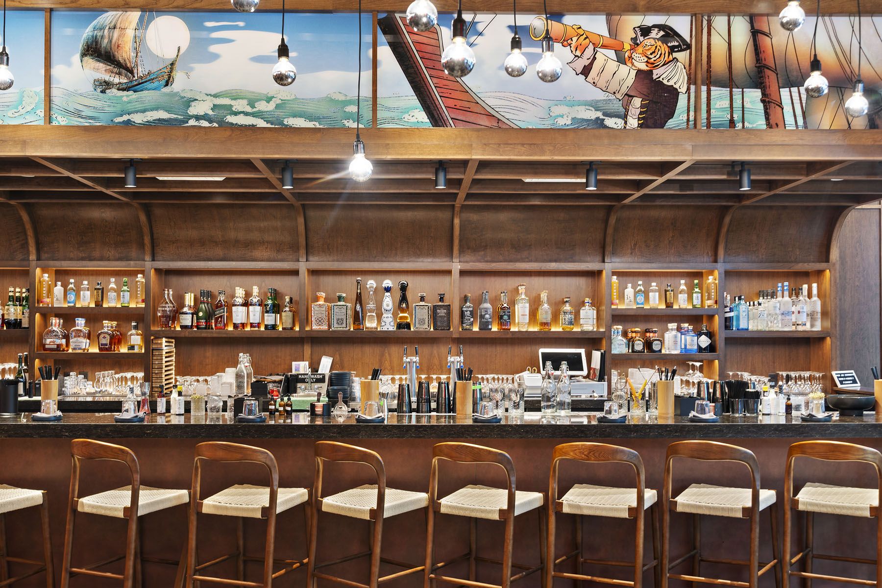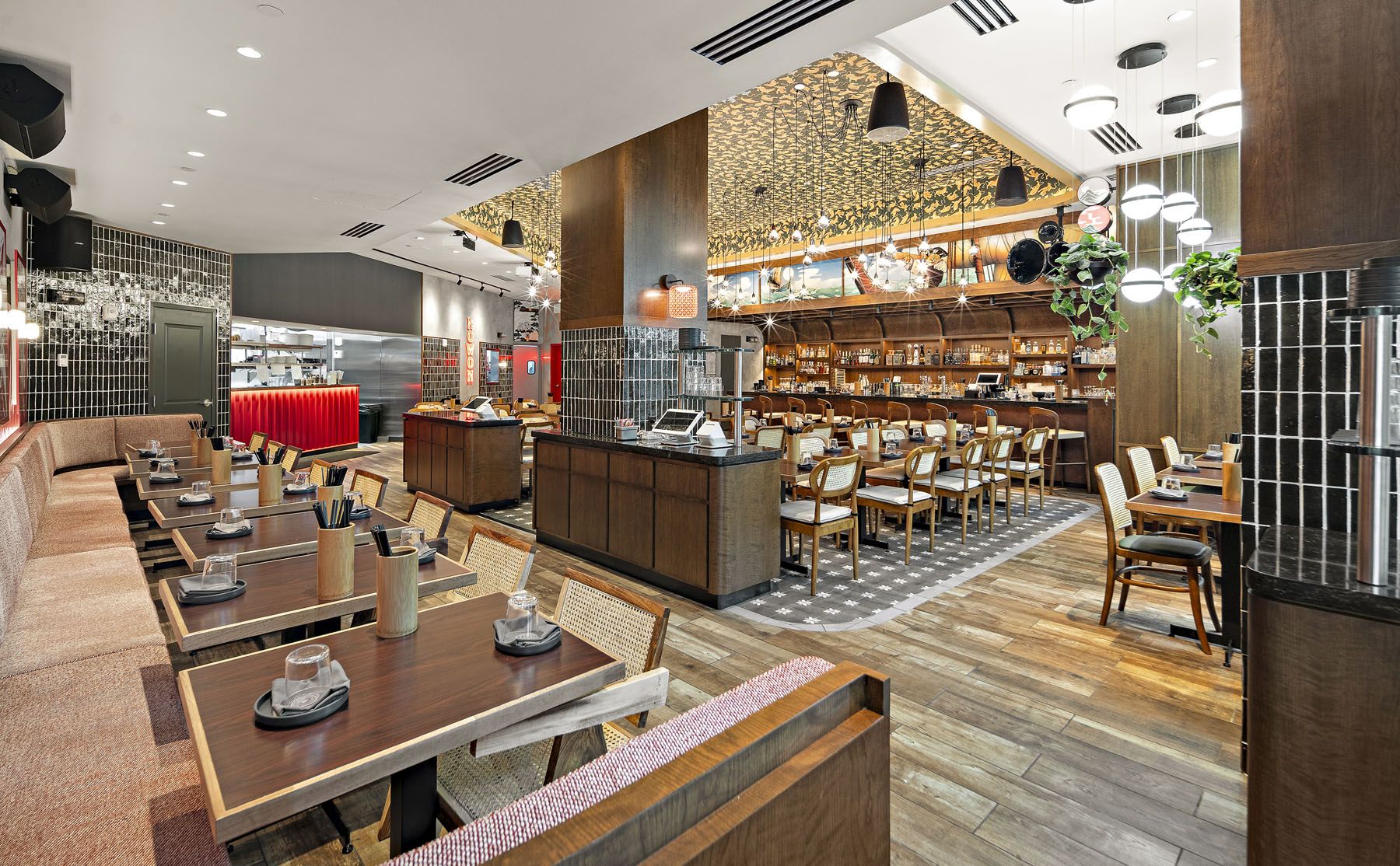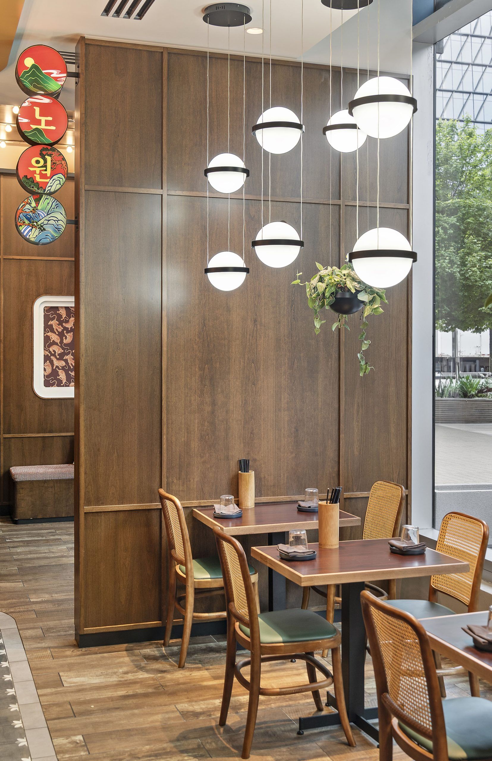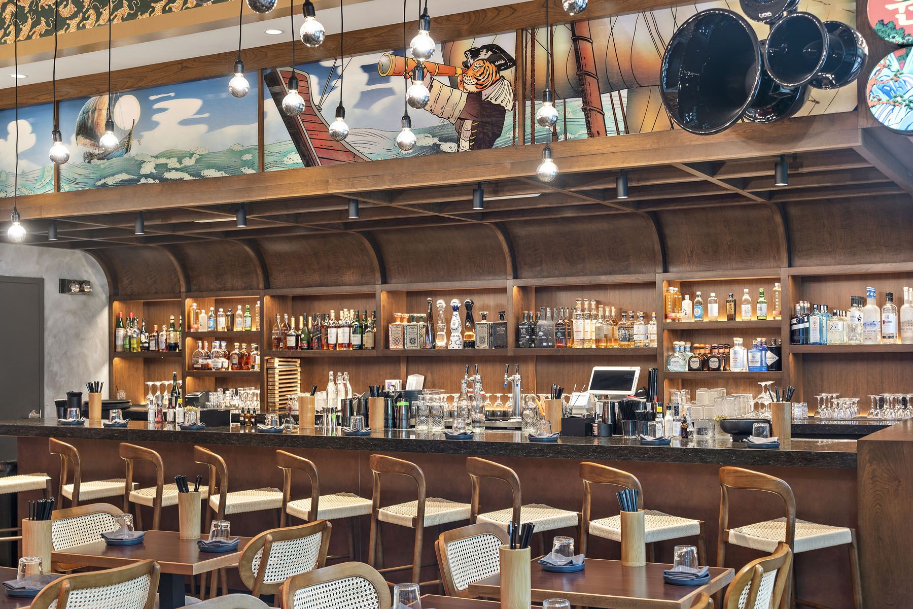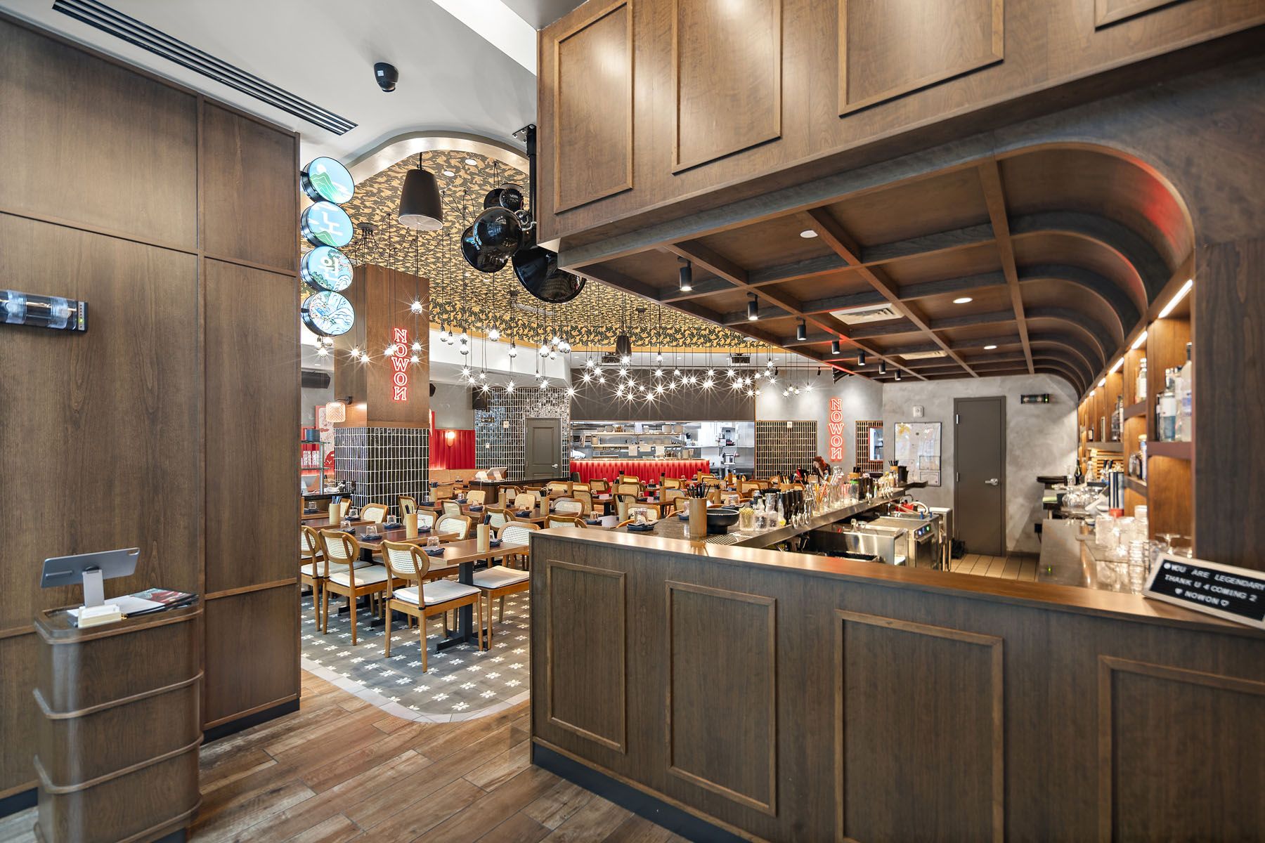 The design for this restaurant transformed the space from commercial into an inviting space. With built-in booths, indoor dining and bar areas, and an outdoor seating for guests to enjoy, this restuarant offering Korean-inspired fare is a great attraction in Boston’s Seaport.